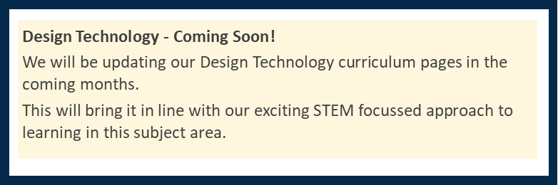 Students at KS3 are taught on a 9-week carousel in Design and Technology. They will rotate around key DT disciplines in an academic year.